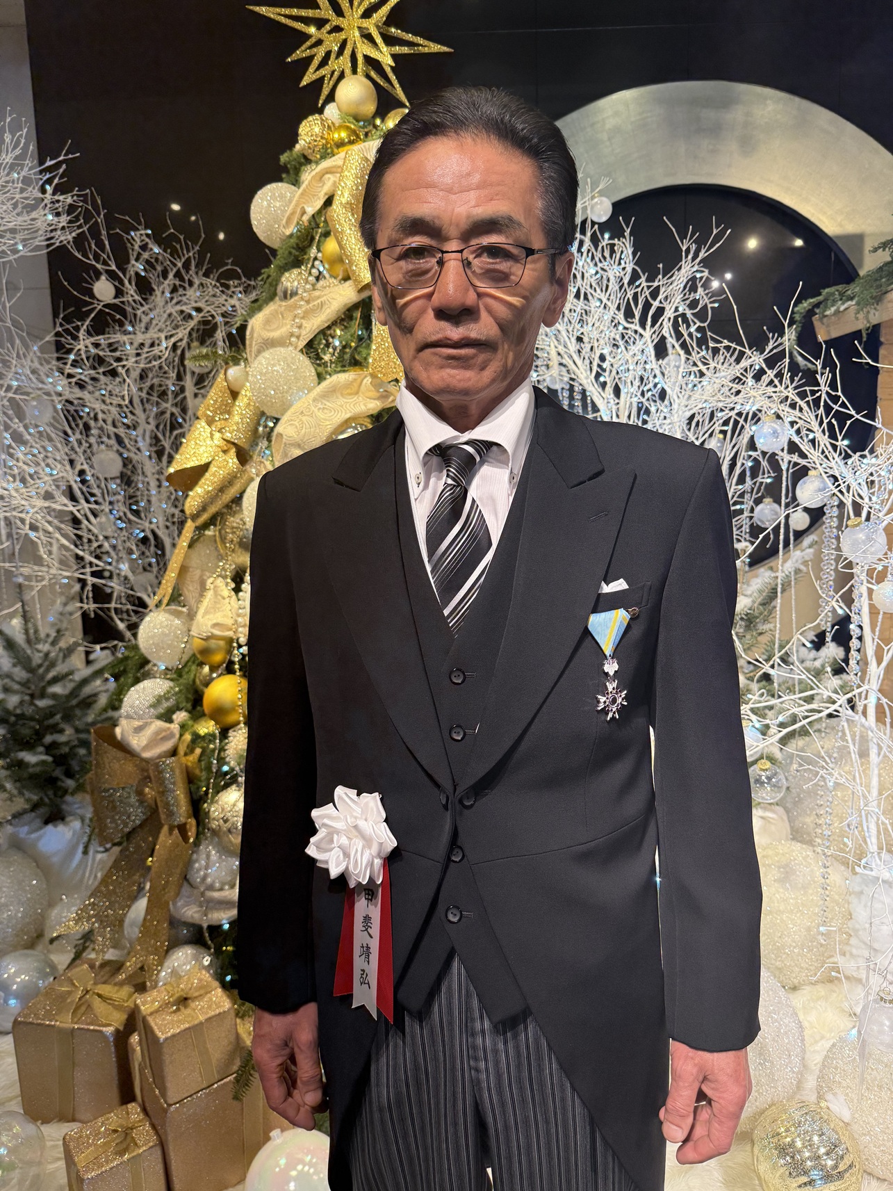 瑞宝単光章の受章おめでとうございます 福岡支店 2025年11月21日 このたび、福岡支店直営班の甲斐靖弘さんが、長年にわたり送電事業に尽力し、その功績が高く評価されたことから、令和7年秋の叙勲において 瑞宝単光章 を受章いたしました。 今回の受章は、その長年の努力と功績が認められたものであり、社員一同、心よりお祝い申し上げます。今後もさらに活躍されることを期待しています。