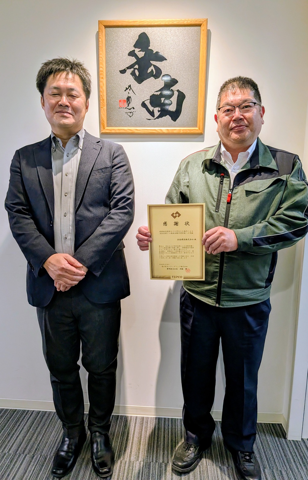 東京電力パワーグリッド株式会社より感謝状の授与 機材センター・研修センター 2026年02月04日 東京電力パワーグリッド株式会社 静岡総支社 渕脇総支社長より、消防本部と合同で行われた送電設備救助訓練への協力に対し、感謝状が授与されました。 当社研修施設の提供を通じて、地域防災の要である救助技術の向上と連携強化に貢献できたことを大変光栄に存じます。今後も電力の安定供給を支えるとともに、地域社会の安全・安心に寄与する活動に積極的に取り組んでまいります。